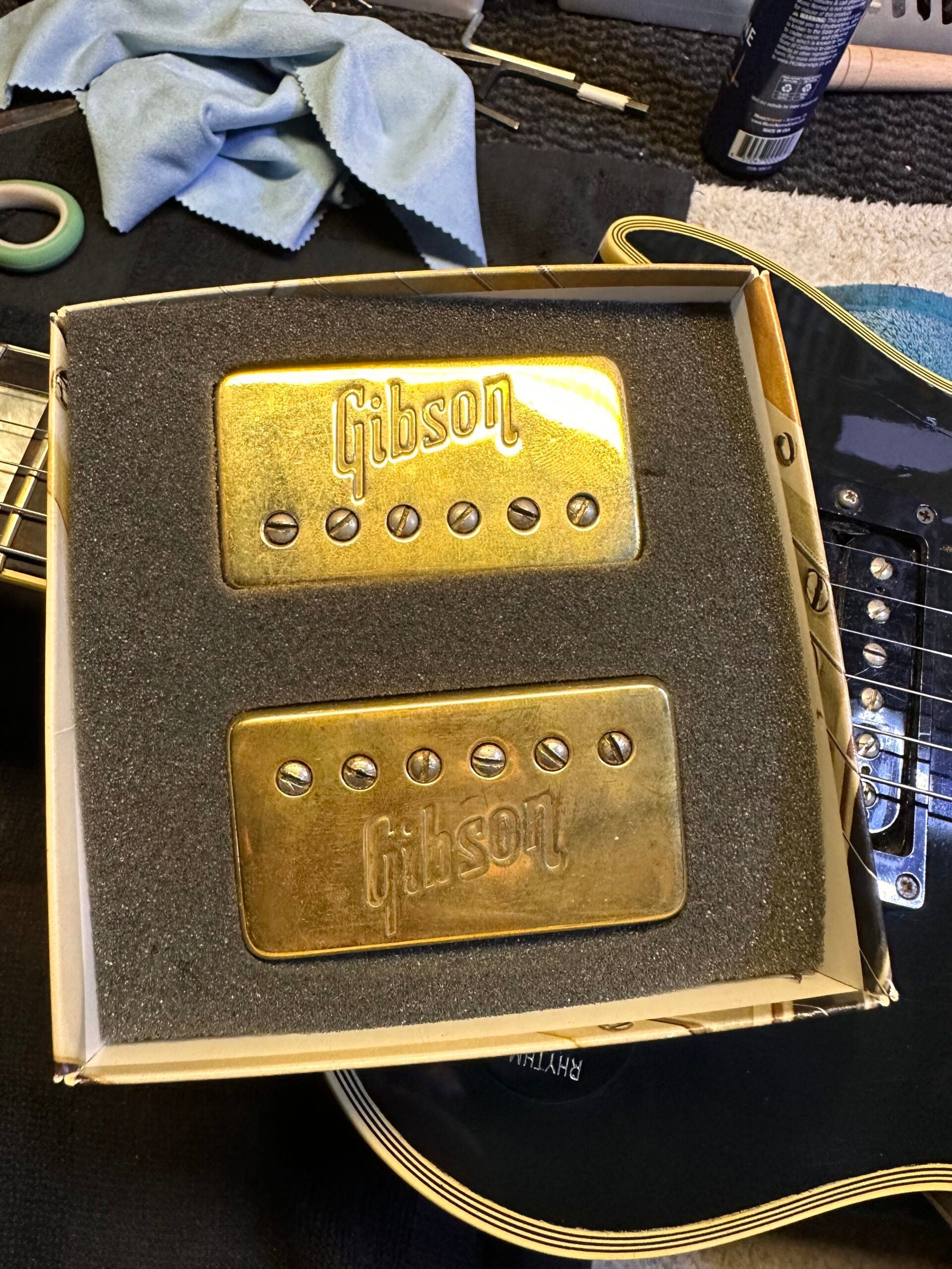 For sale is this 1972 Black beauty Gibson Les Paul Custom. This guitar is in 2010 refinished, all hardware is new, pots and wiring new, fresh refret. All work done by Dick Dijkman (except electronics). Got new Bare Knuckle Peter Green pickups and wiring. Original Gibson T-top pickups included with 'embossed' Gold pickup covers, only used by Gibson from about 1971 to 1973.