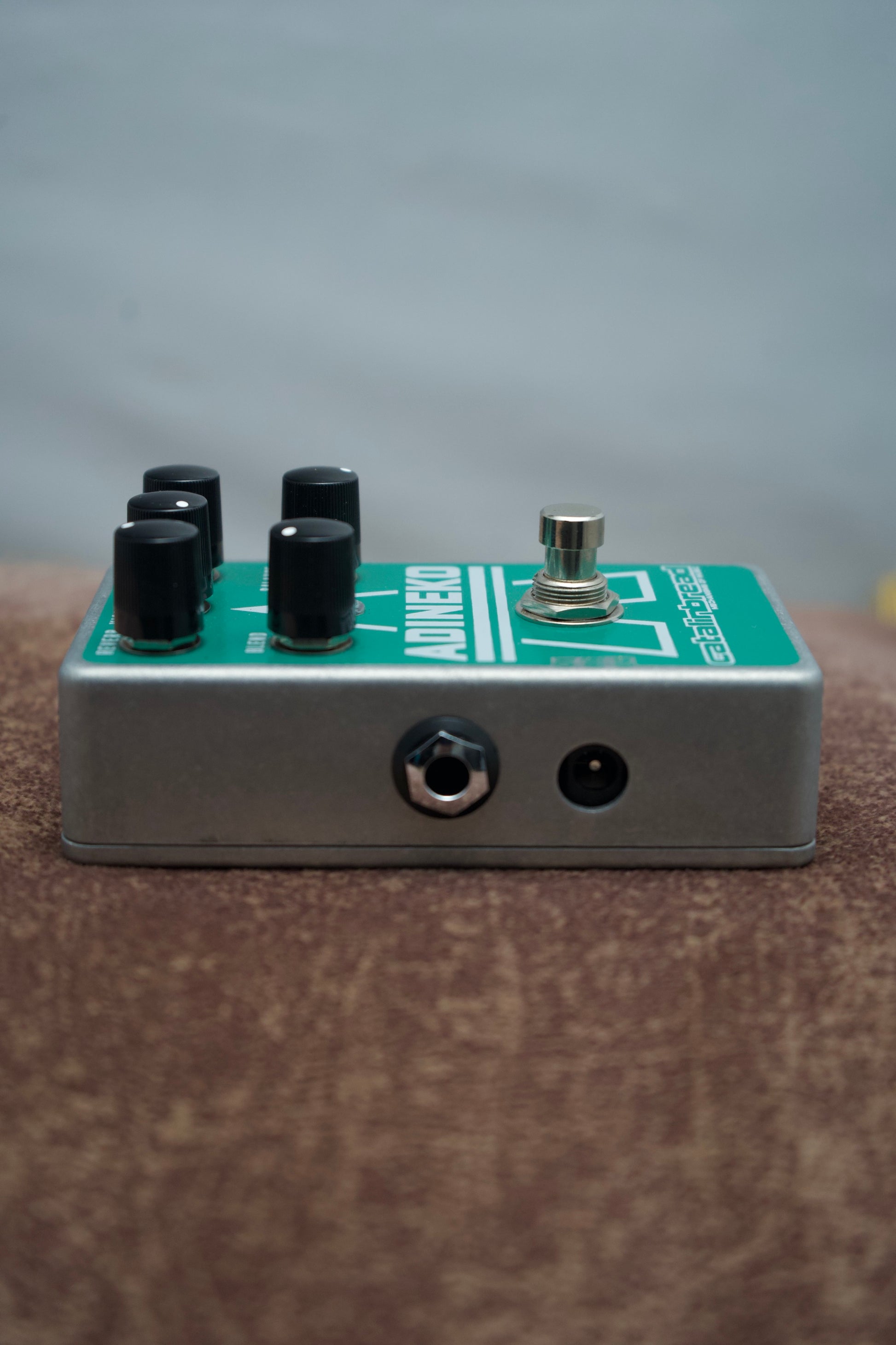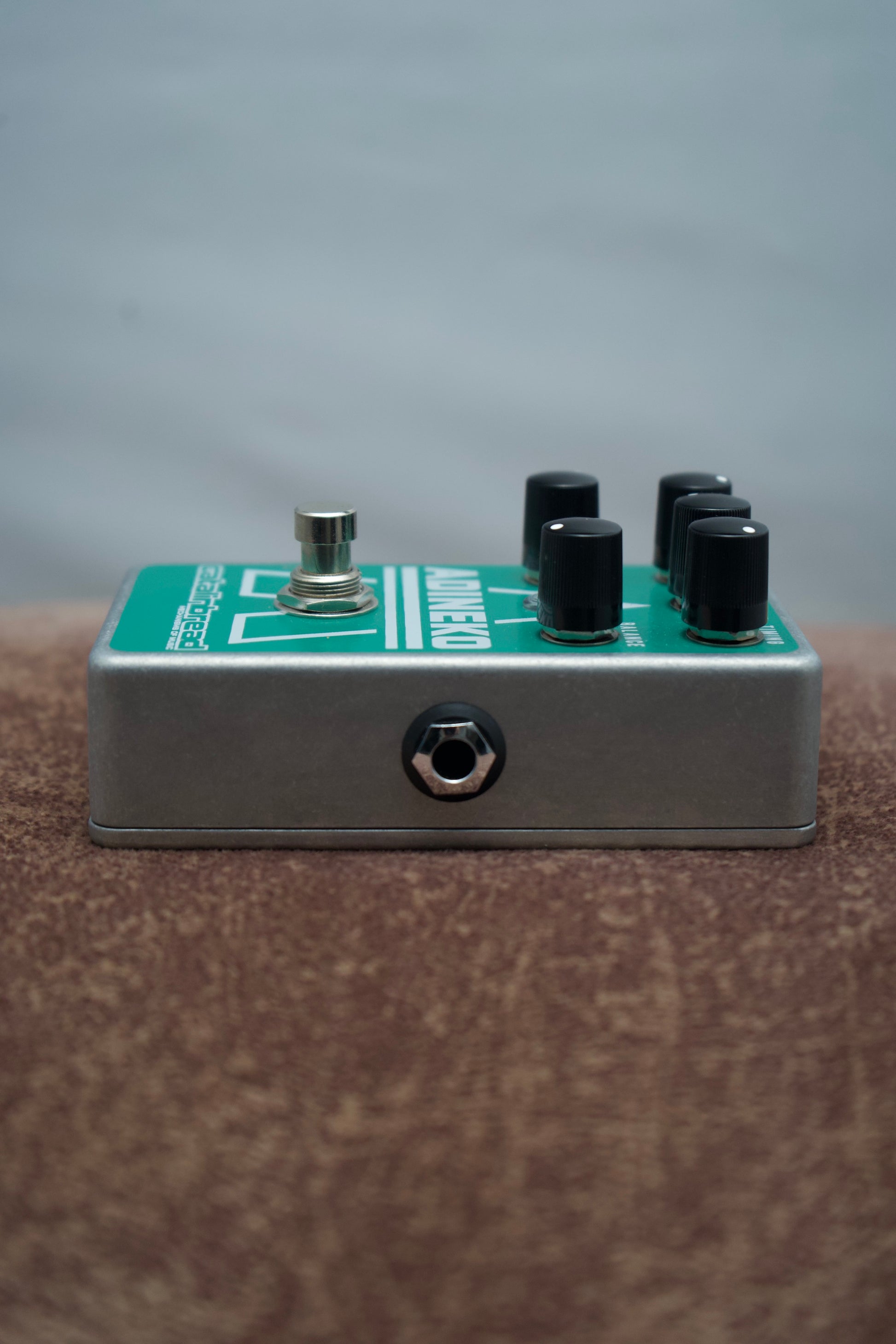 The Catalinbread Adineko is a delay pedal with a distinctive, vintage-inspired sound. It’s built to capture the vibe of old oil-can echo units from the 1950s and 60s, known for their warm, slightly unpredictable repeats and subtle modulation. You can dial in everything from classic slapback echo to more murky, ambient delay tones, and the controls let you shape how the repeats feel and interact with your playing.