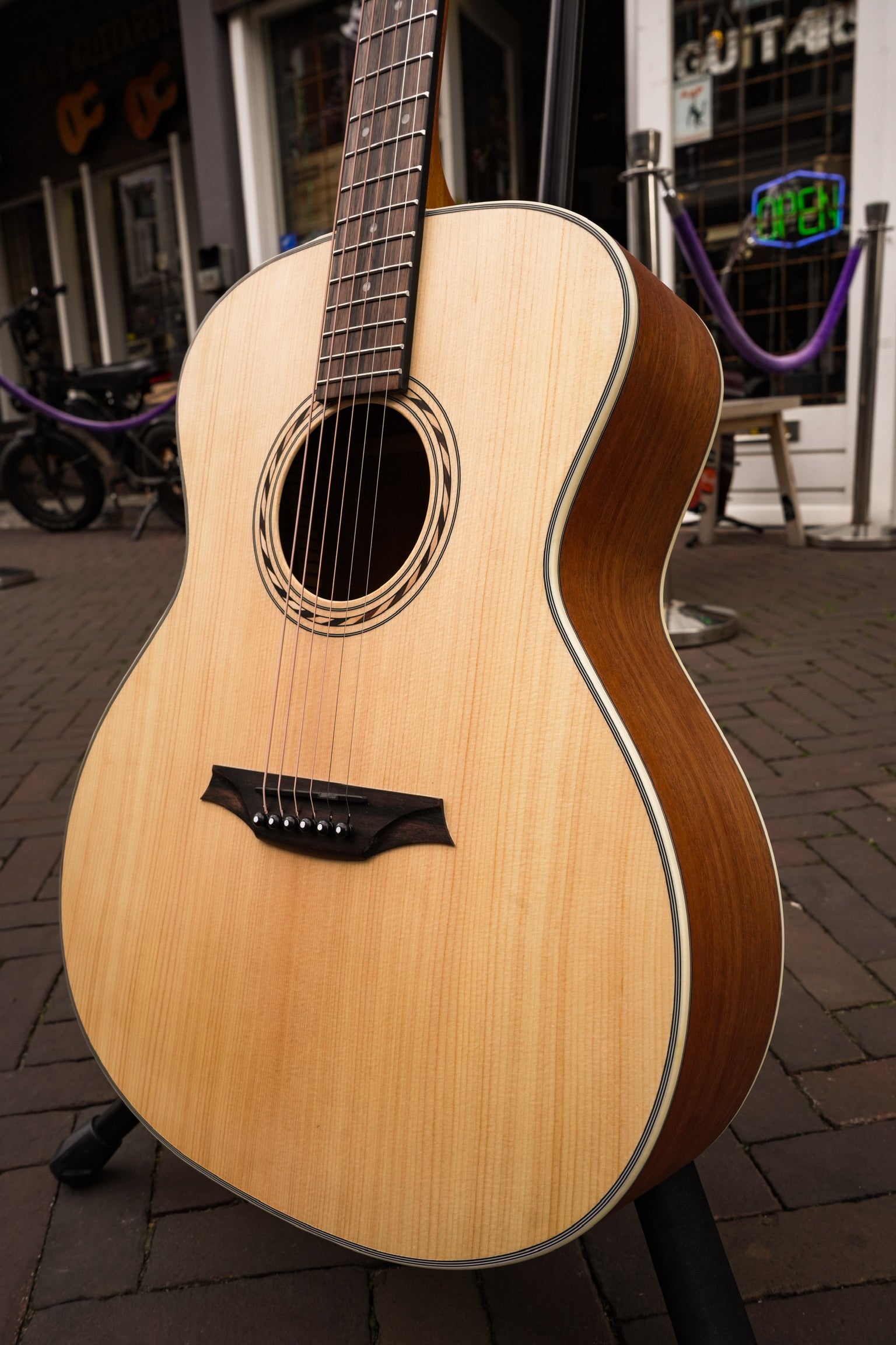 Great Quality, affordable and serious build steel string guitar. Classic size OM model in Satin finish and beautiful Wood inlays.