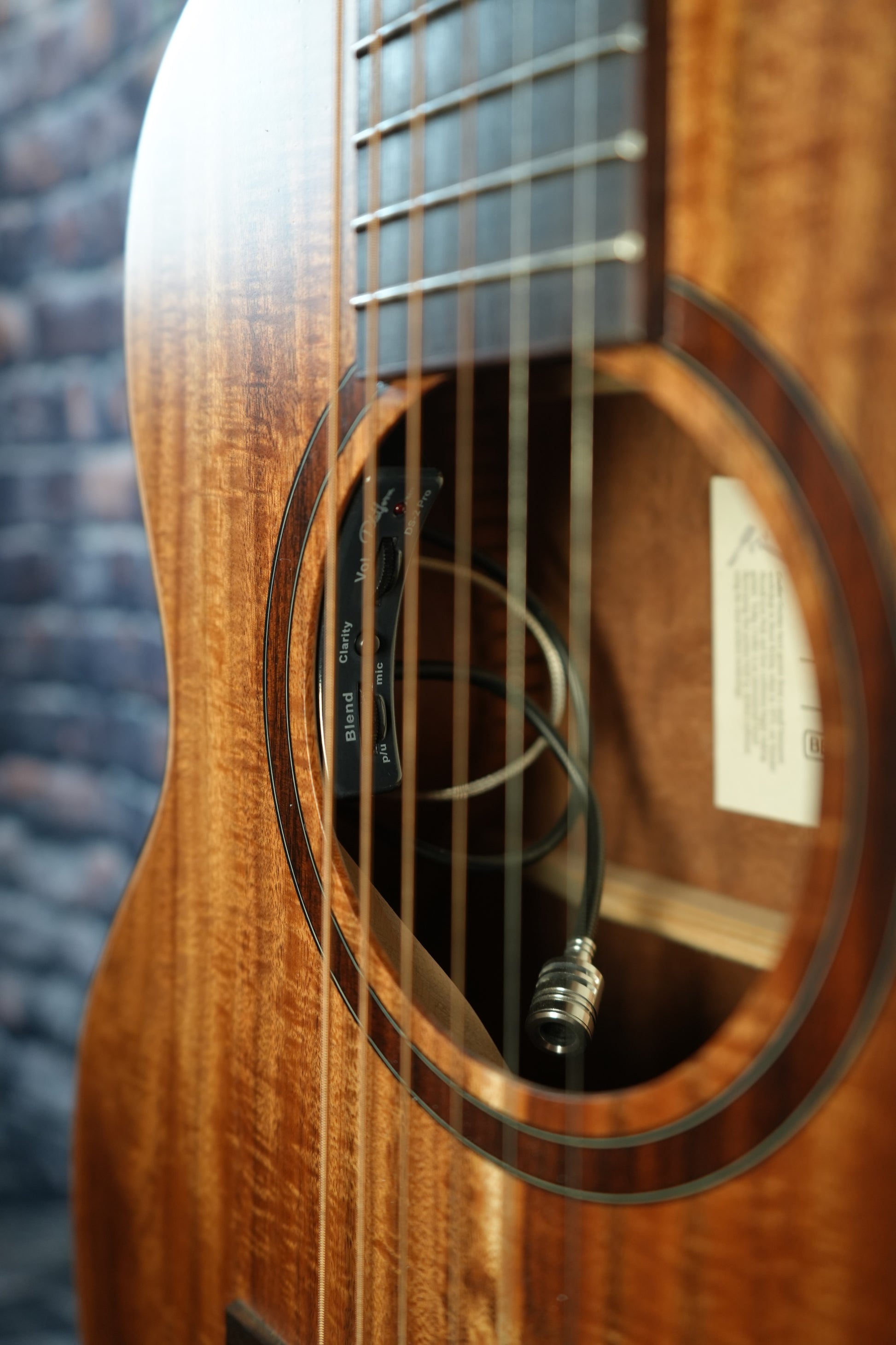 - Soundhole Inlay: Flamed Acacia