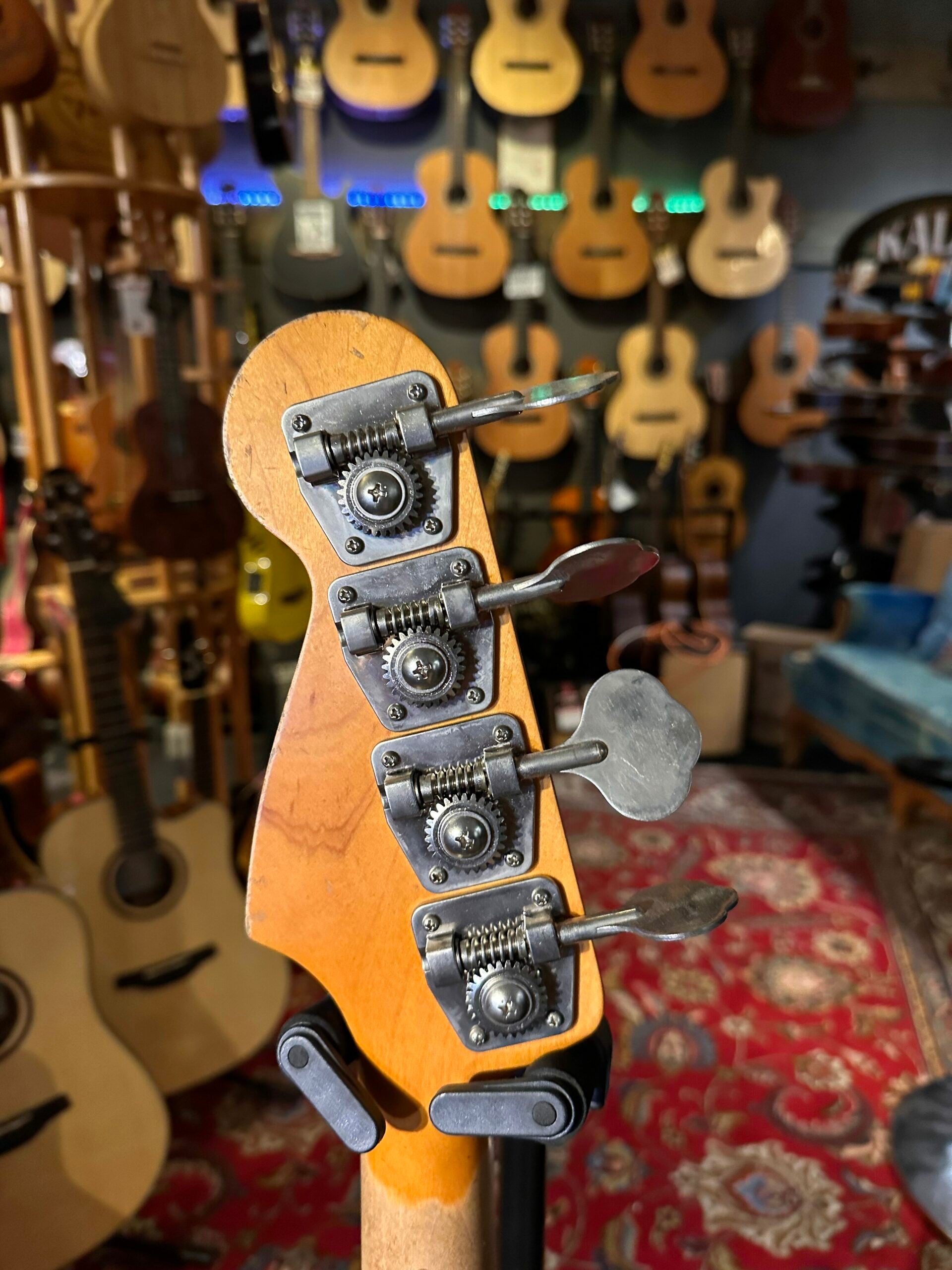 NOS (New Old Stock) Handbuild in Amsterdam Holland, superlight weight P-Style bass in aged relic black nitro finish. A full, medium thick maple neck (old style), loaded with Apollo P bass 60's style hand wound pickups. A custom shop quality for half the price!! Aged nitro black finish and nickel vintage look hardware. This is cool bass, super light, perfect for stage! Comes with a heavy duty gig bag!