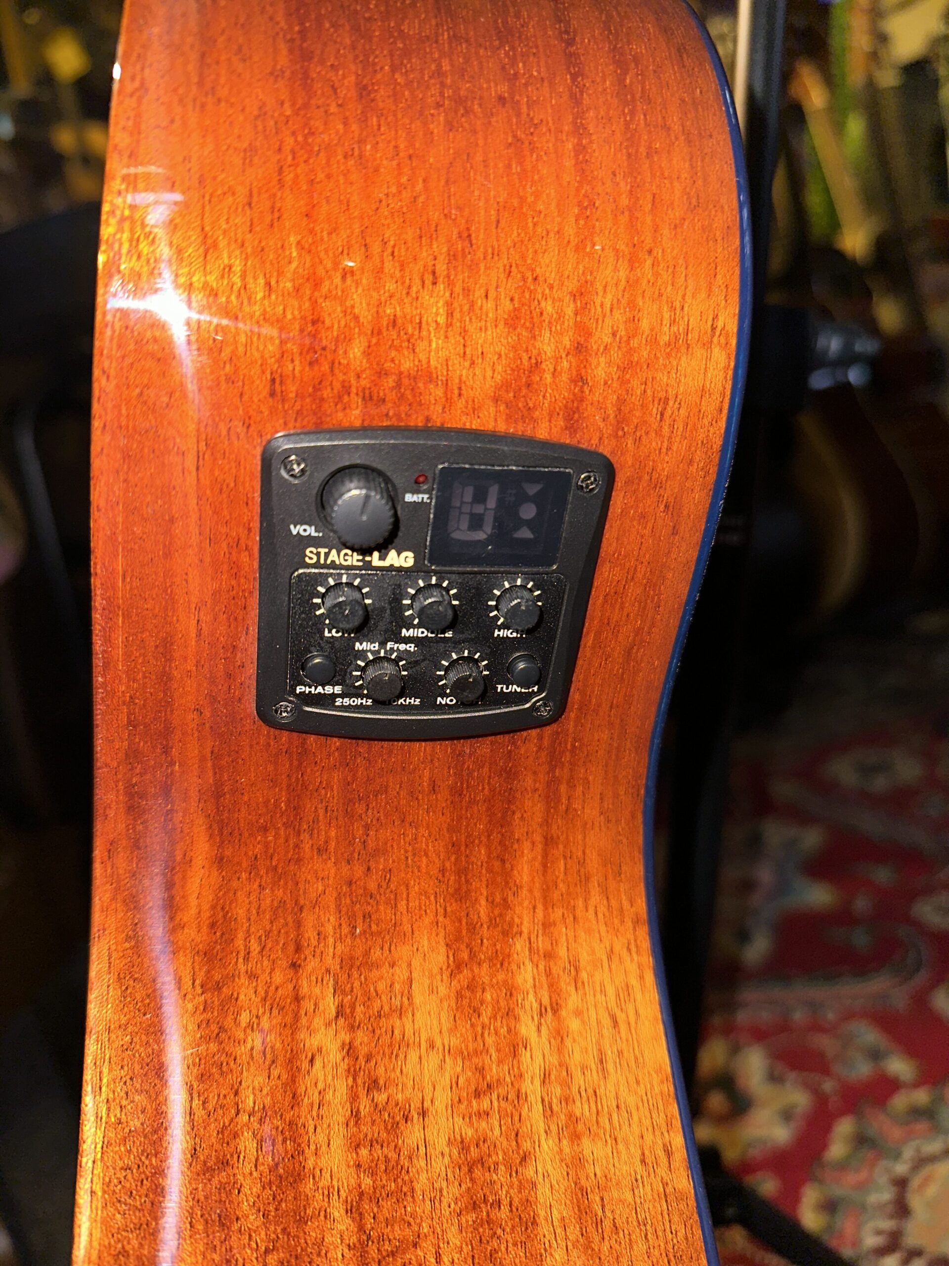 Beautiful gloss finish blue burst top, mahogany back and sides. loaded with Lag electronics and cutaway. Great guitar for a reasonable price!SPECIFICATIONS