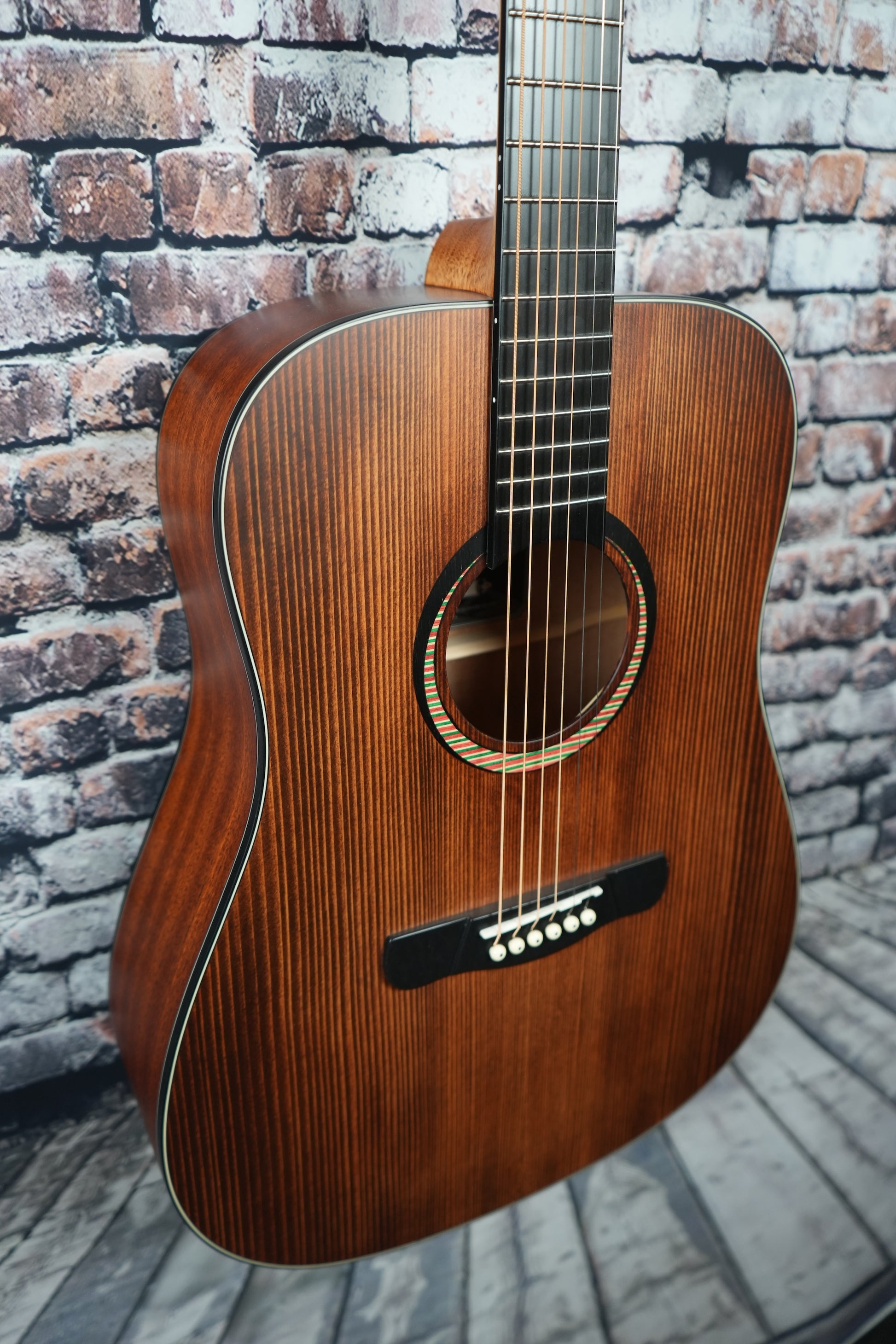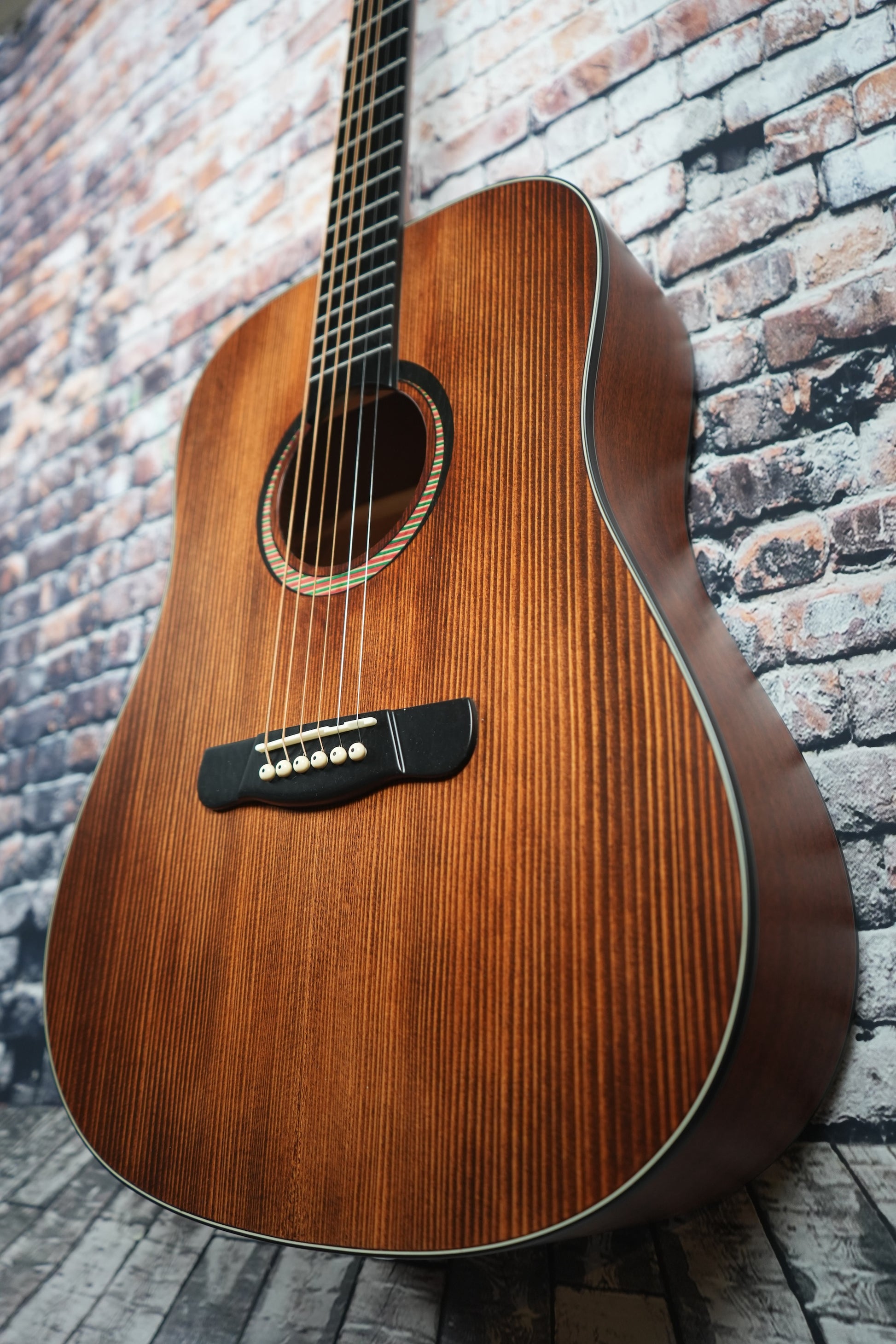 The Merida C-10D is a traditional dreadnought acoustic guitar built around a solid balsa top with sapele back and sides, giving it a full, balanced tone with clear highs and warm lows. Its classic body shape offers strong projection and a lively voice that responds well to both strumming and fingerpicked playing.