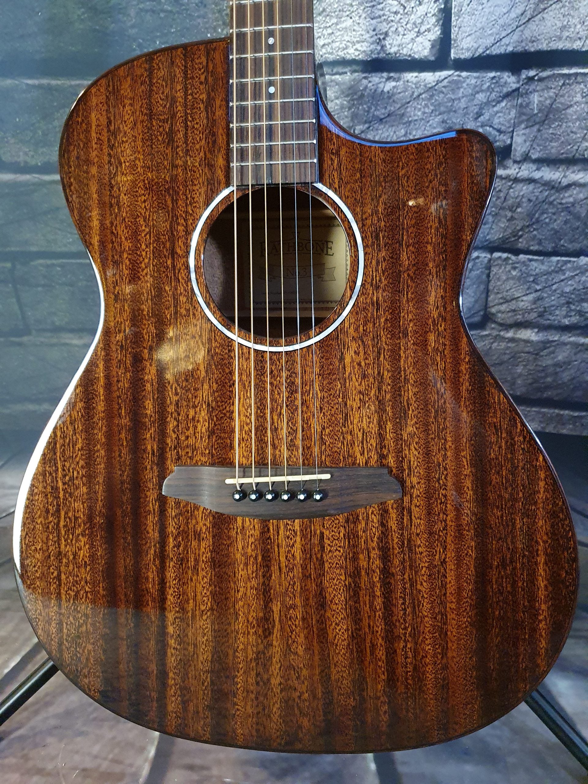 In keeping with the all-mahogany tonewoods, the Rathbone R3MCE is a classy-looking guitar with a warm and woody tone. It responds well to careful strumming and fingerwork delivering pleasing tones across the entire midrange. However, if you really 'dig in' you can unlock a whole other voice as the mahogany is brought to life.