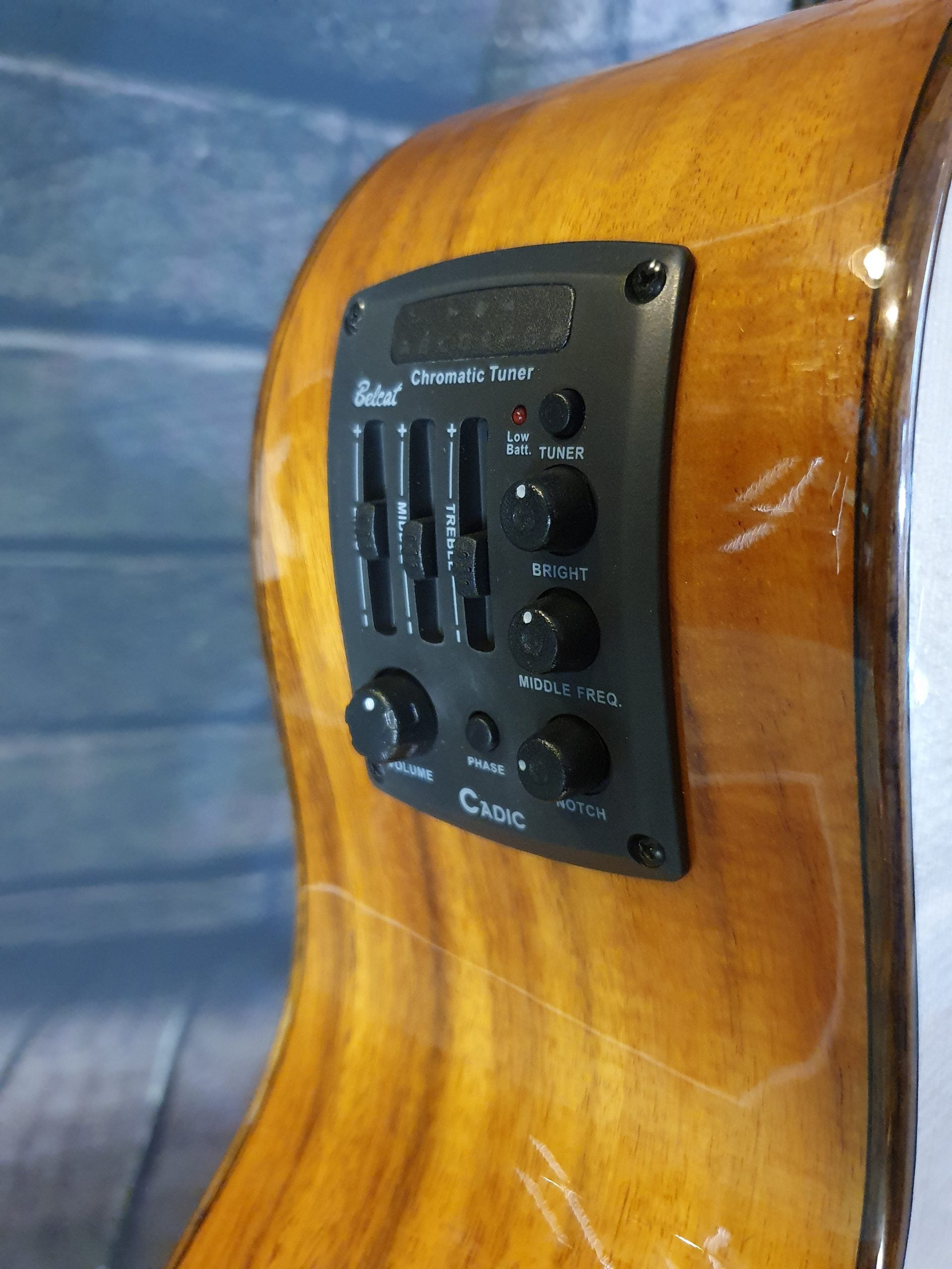 This wonderful R3SKCE combines the greater size of the Grand Auditorium body shape and the breath-taking beauty of Koa to stunning effect. Clear, bright and sparkly in tone thanks to the Solid Spruce and Koa combination, this instrument is powerful and linear in its delivery. Ideal for strident strumming and well-articulated fingerstyle playing. The perfect all-rounder, the No.3 has the same scale length as the Orchestra Model but body dimensions closer to a classic dreadnought. The larger body cavity naturally produces greater bass tones, but without sacrificing clarity, and that's the beauty of the Grand-Auditorium. However, a larger body does not mean an unwieldy instrument. Far from it, in fact. The beautiful curves around the waist of the Rathbone No.3 ensure the guitar will sit comfortably on a knee or hang perfectly from your shoulders.