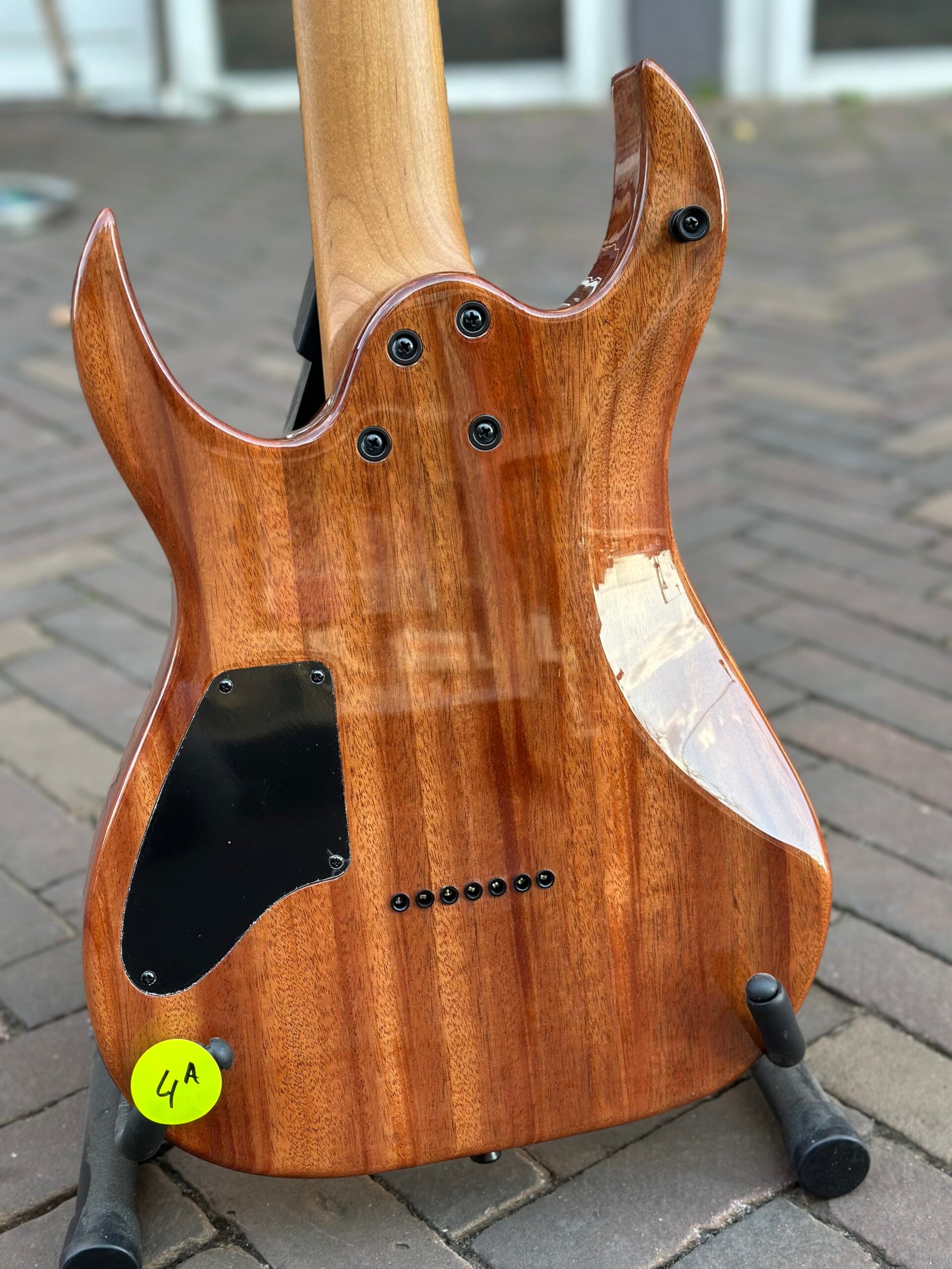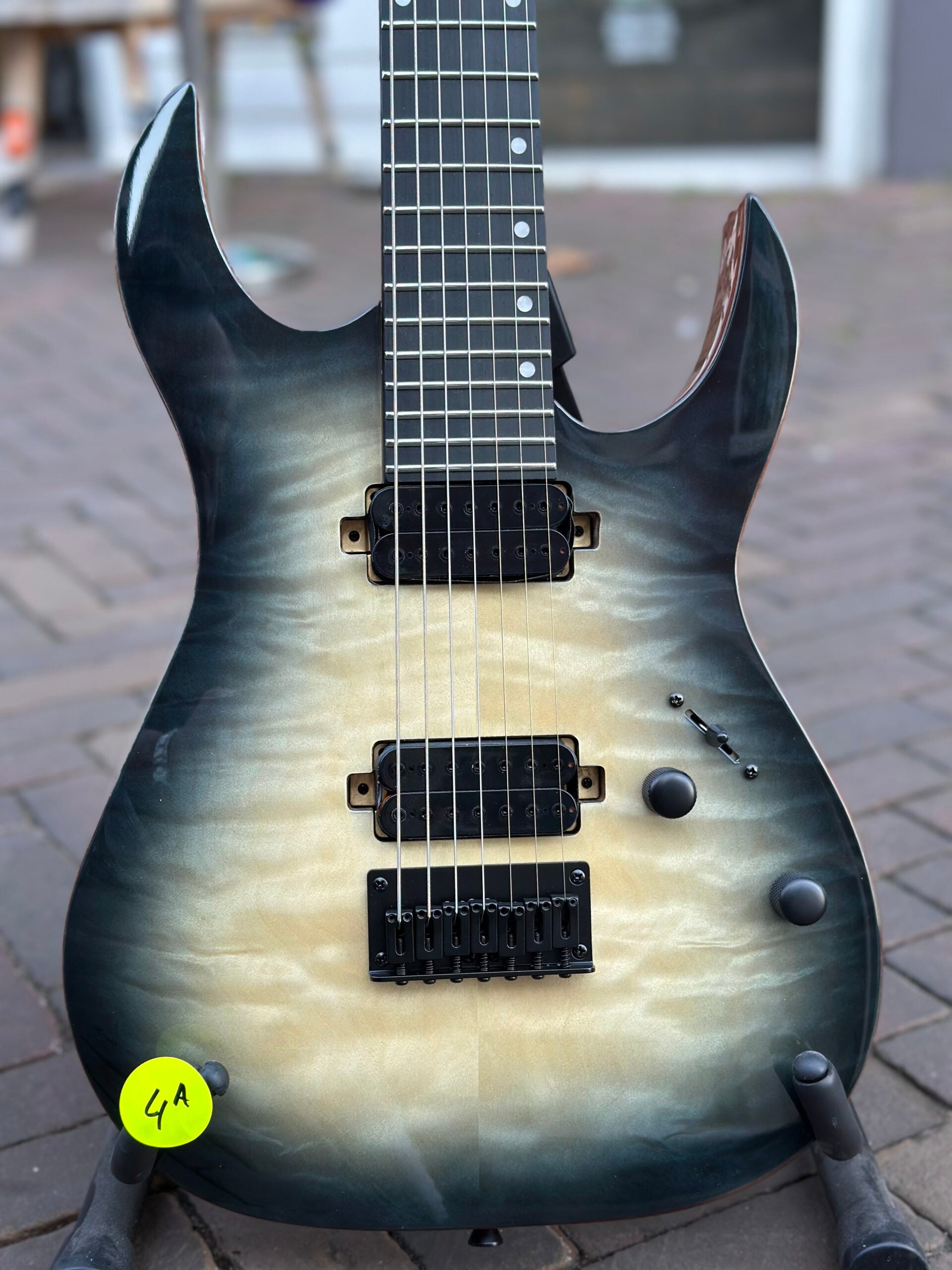 The S-507 is Spira’s flagship 7 string model, lovingly crafted for players who expect the highest level of performance and aesthetics. The S-507 features a luxurious mahogany body with a stunning quilted maple top, delivering both exceptional resonance and eye-catching beauty. The roasted maple neck and fretboard offer unmatched stability and a smooth, responsive playing experience, ideal for advanced techniques.
