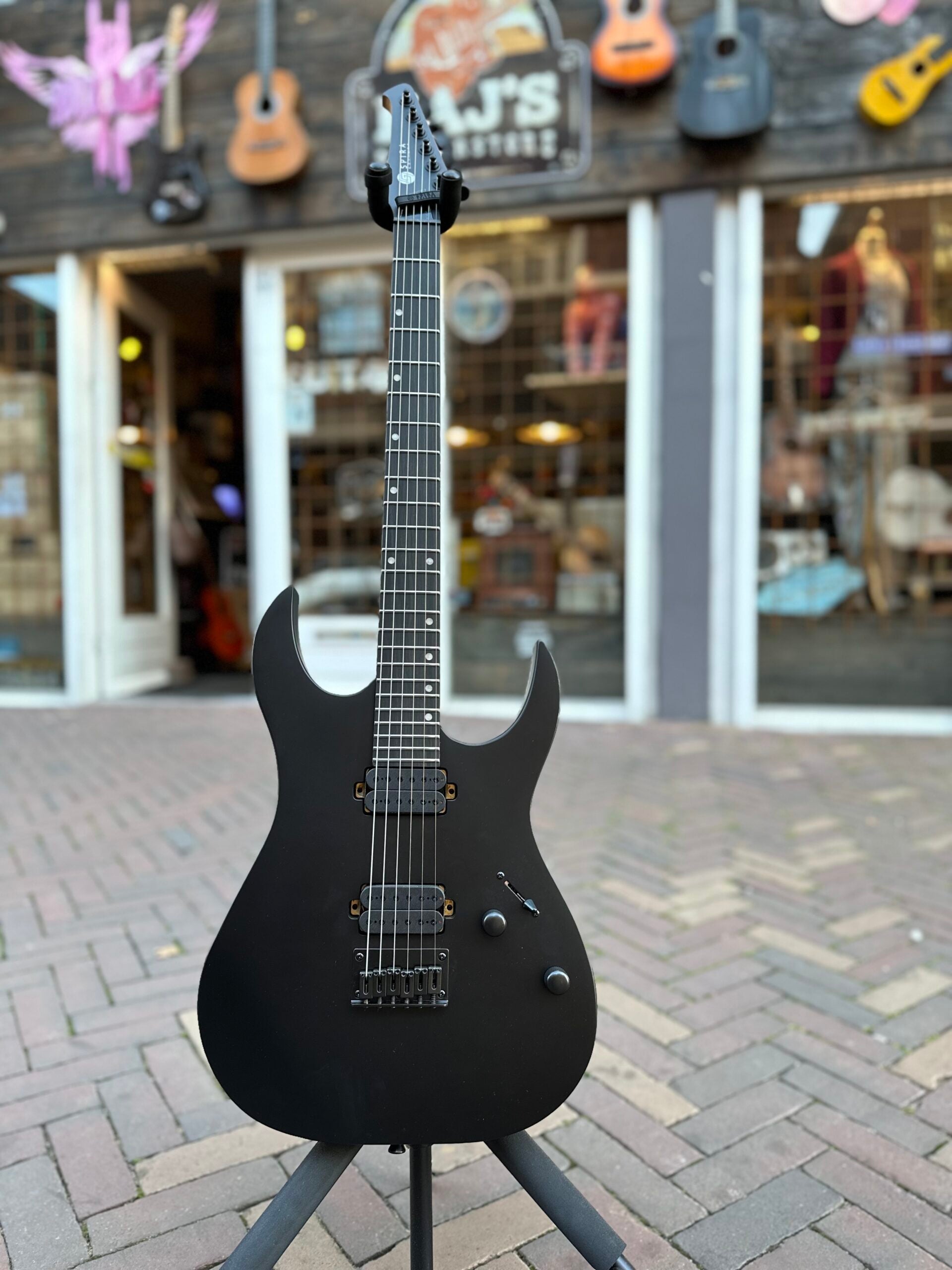 The S-400 is a sleek high-performance double cutaway shred machine designed for players who demand modern design with exceptional tone and playability. The S-400 features a roasted poplar body and a Canadian roasted maple neck, ensuring both durability and superior performance. Its Ebony Tech fretboard with 24 jumbo frets provides a silky smooth, responsive playing experience whatever the genre.
