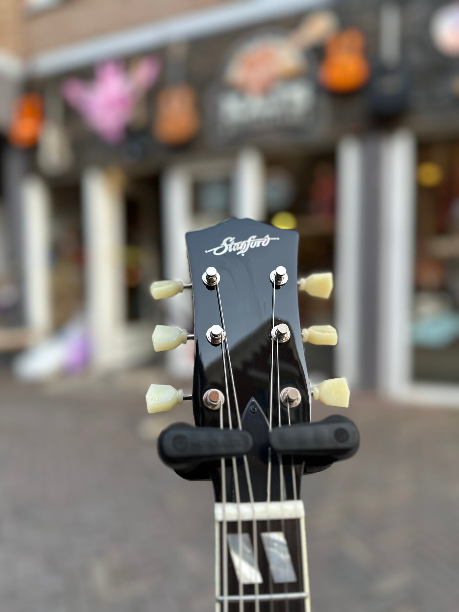 WOW,...AMAZING GUITAR,... VALUE FOR YOUR MONEY!! MEDIUM WEIGHT SOLID BODY CUATAWAY GUITAR.LES PAUL STYLE GUITAR LOADED WITH 2 HUMBUCKER PICKUPS AND B7 BIGSBY TREMELO. THIS THING IS ROCK AND ROLL!!Stanford's Crossroads series electric guitars draw inspiration from iconic guitars of the past, offering exceptional build quality and superb affordability. These meticulously crafted instruments provide outstanding value for money, allowing players to experience the essence of legendary designs at an accessible price point. NITRO FINISH!!