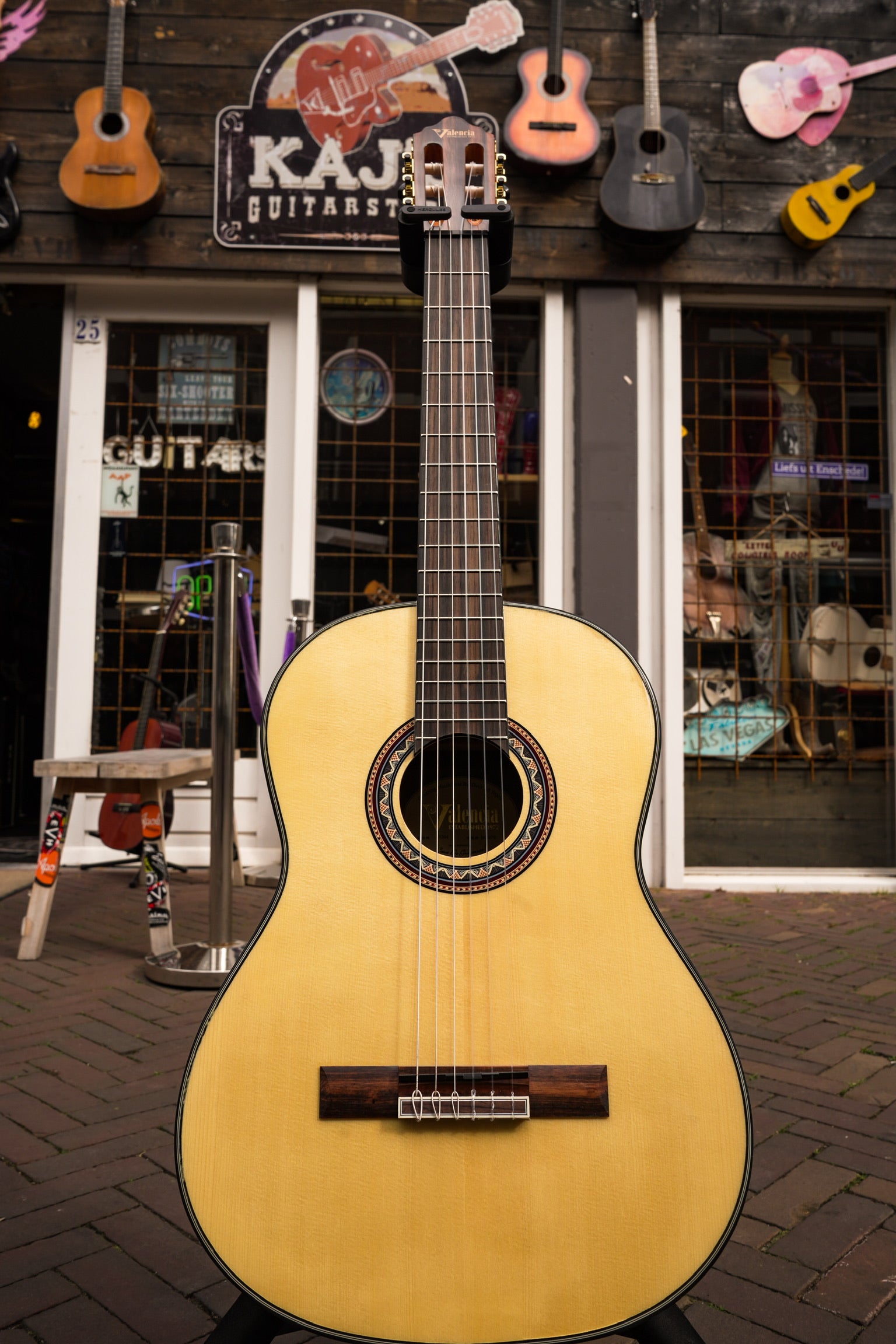 klassieke gitaar 4/4, sitka sparren top, walnoot zij- en achterblad, hoogglans finish